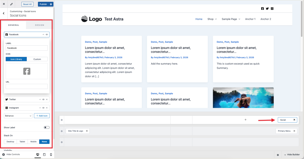 How to Add Social Media Icons with Astra Header & Footer Builder