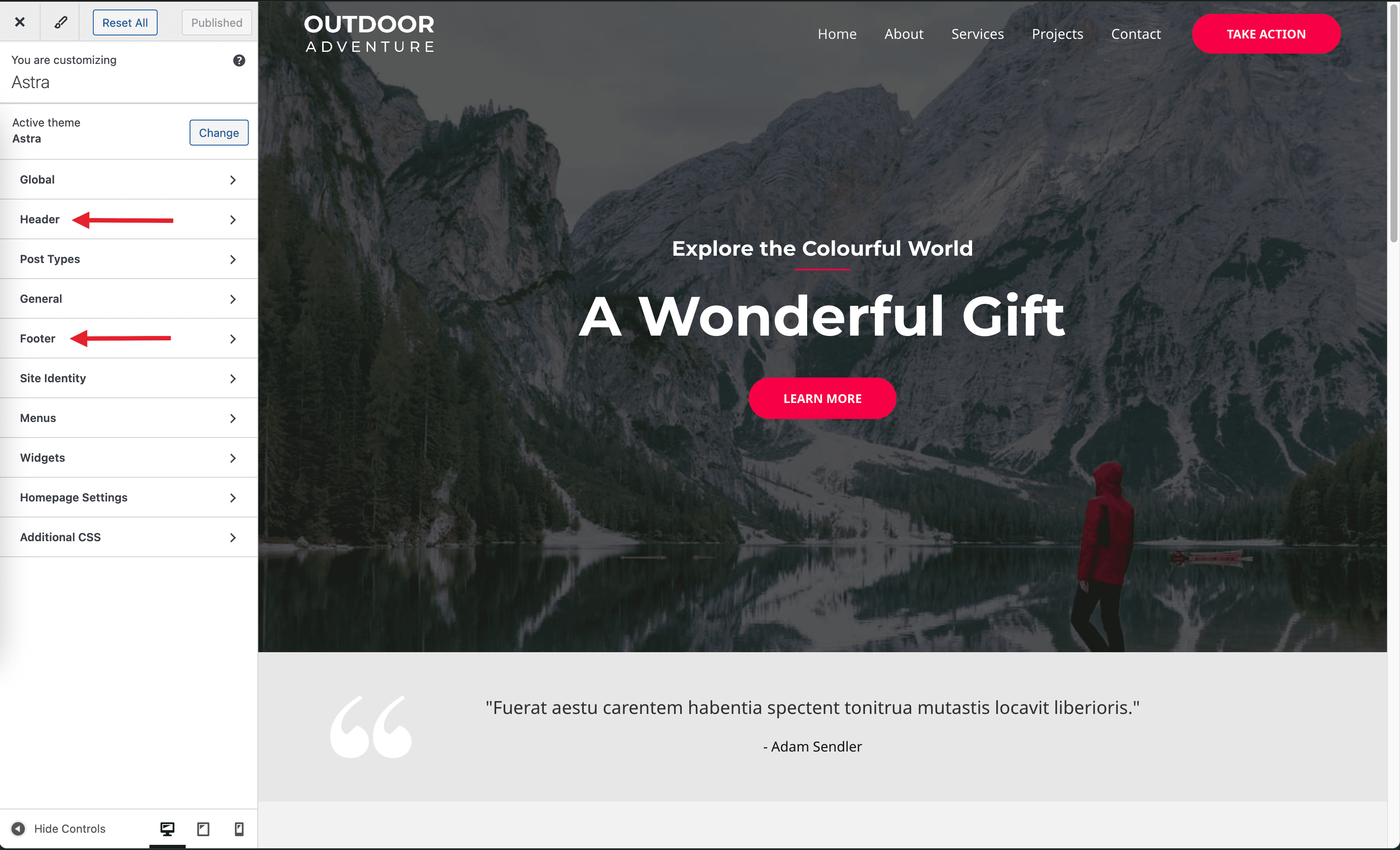 Astra Header Footer