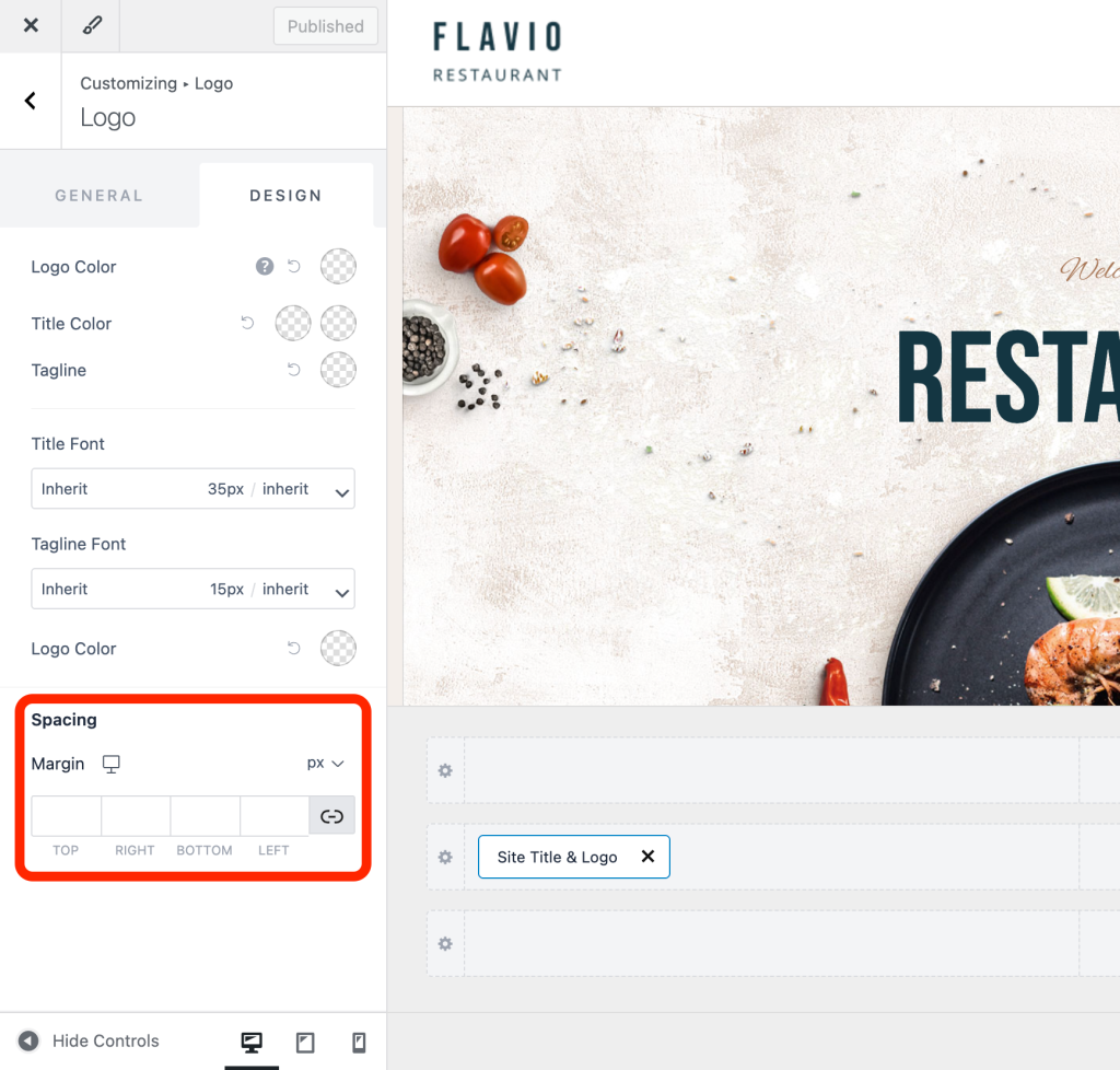Step 5 – You can switch to the Design tab of the element and set Logo margins.