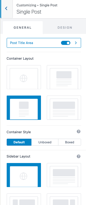 In this section, the single post settings control how individual blog posts are displayed on your website. You can control the title area, container and sidebar layout, etc.