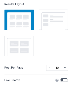 Additionally, you can control the Posts Per Page and Live Search on the Search page settings page.